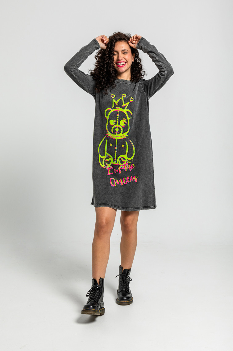 Vestido mini algodón desgastado de grafitti urbano - I'm the Queen