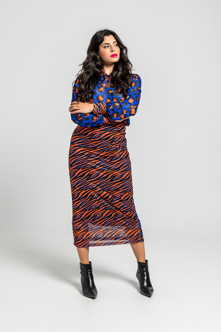 Falda tubo cremallera espalda de estampado de estrellas con animal print - Shiny Girl