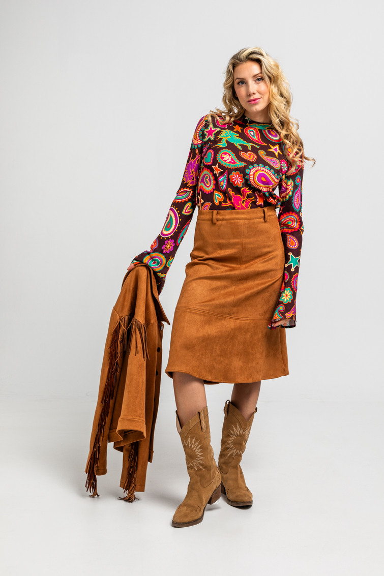 Falda Cowboy de estampado paisley cachemir negro - Alma Libre