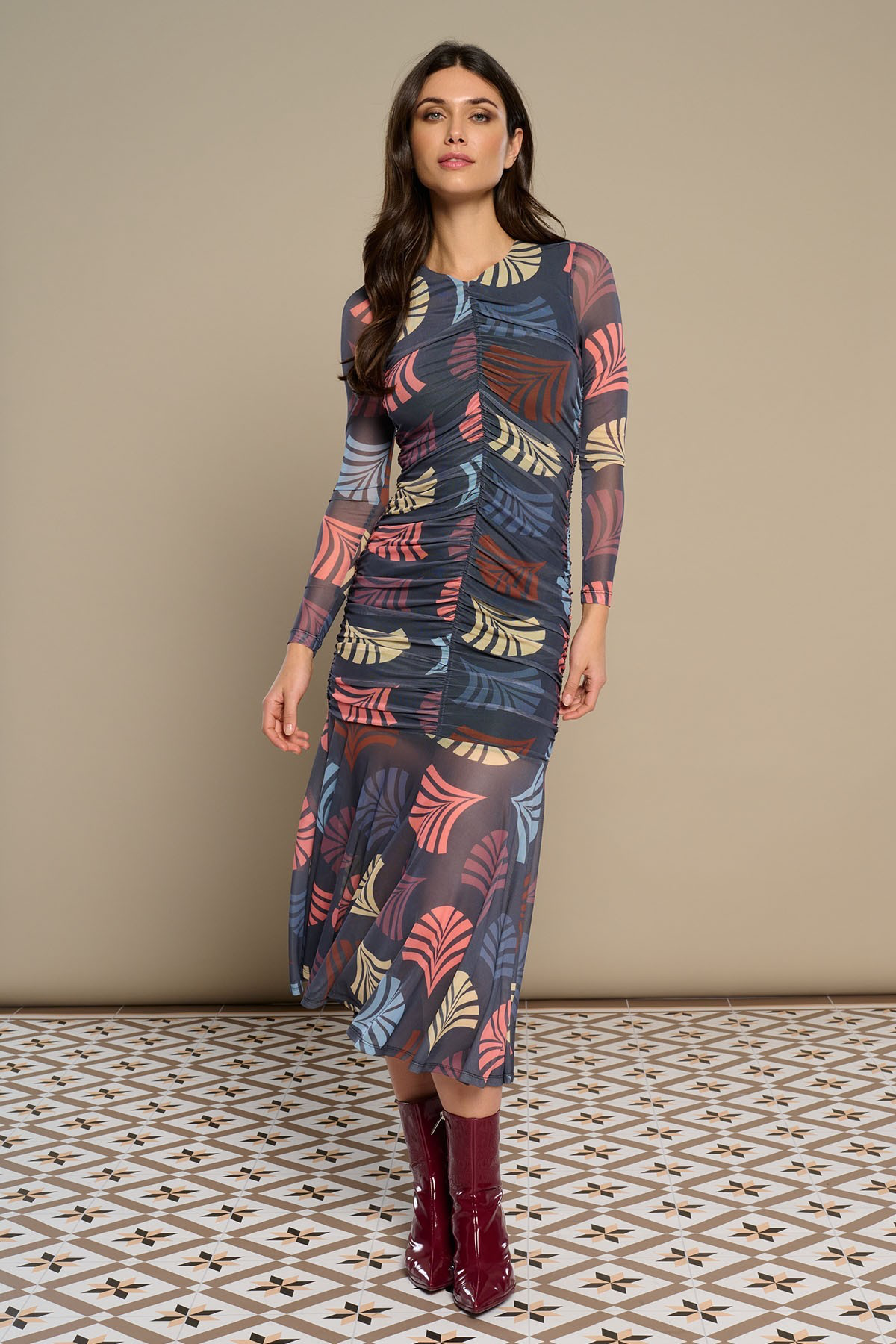 Vestido cuello redondo corte A de estampado animal fuscia - I'm Felina