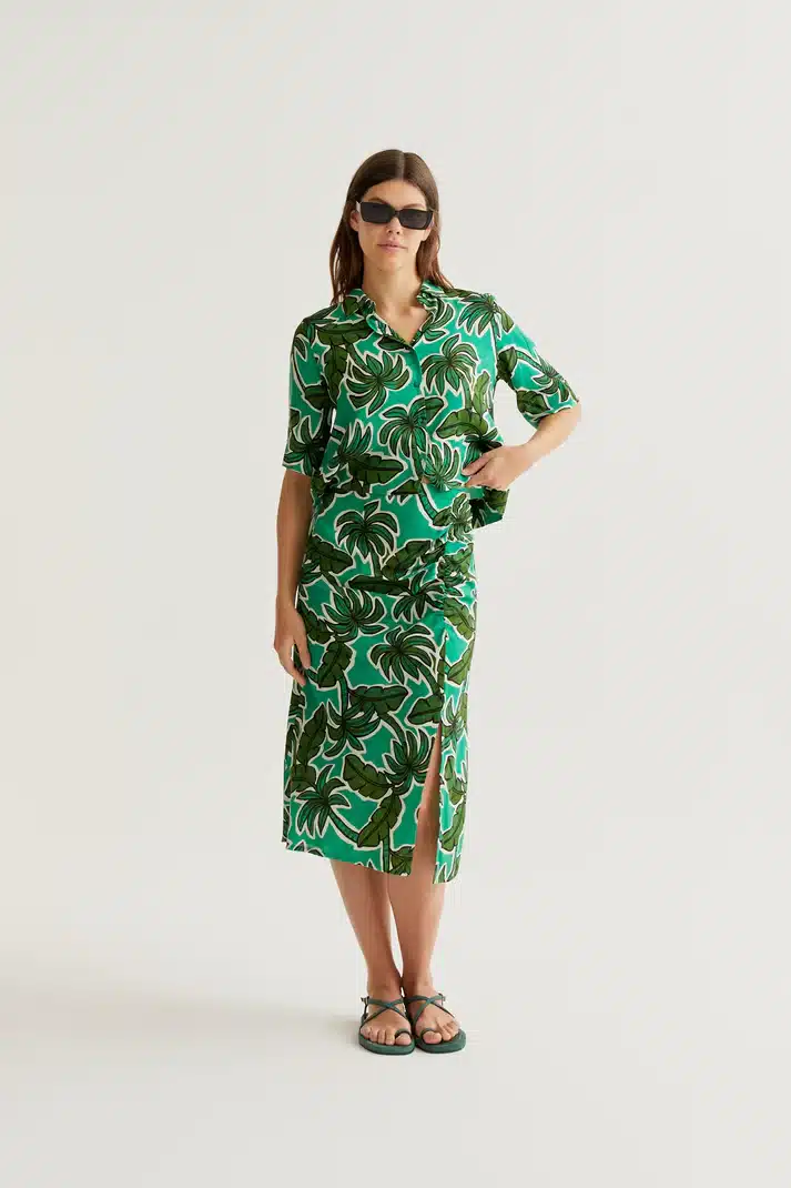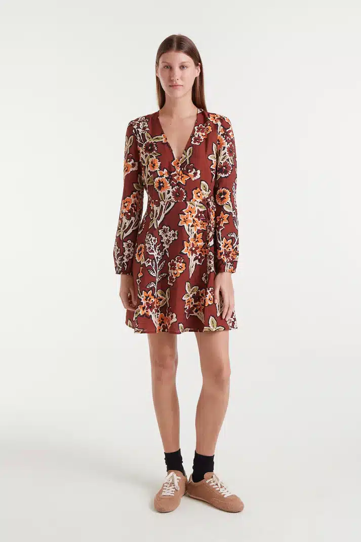 Vestido drapeado laterales de estampado animal naranja - I'm Felina