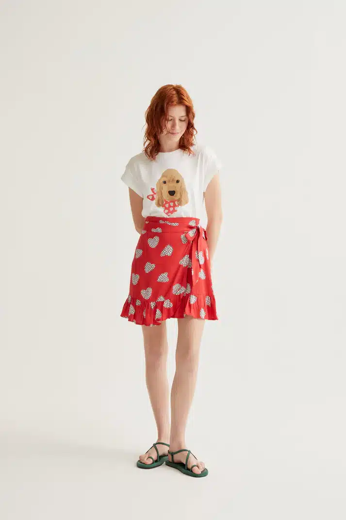 Falda midi drapeado central rojo de estampado Bowie - We can be Heroes
