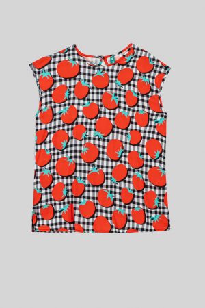 Blusa sin sisa de tomates y vichi blanco y negro – Pomodori
