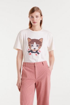 Camiseta con cuello redondo y manga larga. Estampado de guepardo en tonos salmón, gris y verde. Tejido elástico. Cierre en espalda con abertura y botón.