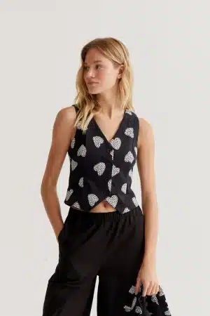COMPOSICIÓN: 85% Viscose 15% Polyamide | CUIDADO: Lavar a máquina en agua fría, no usar blanqueador, no usar secadora, secar colgado a la sombra, planchado a la temperatura máxima de la placa interior de 110º, lavar con colores similares | Forro: No.