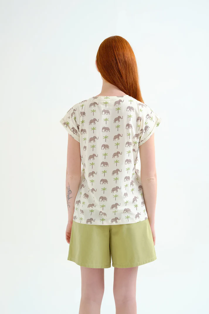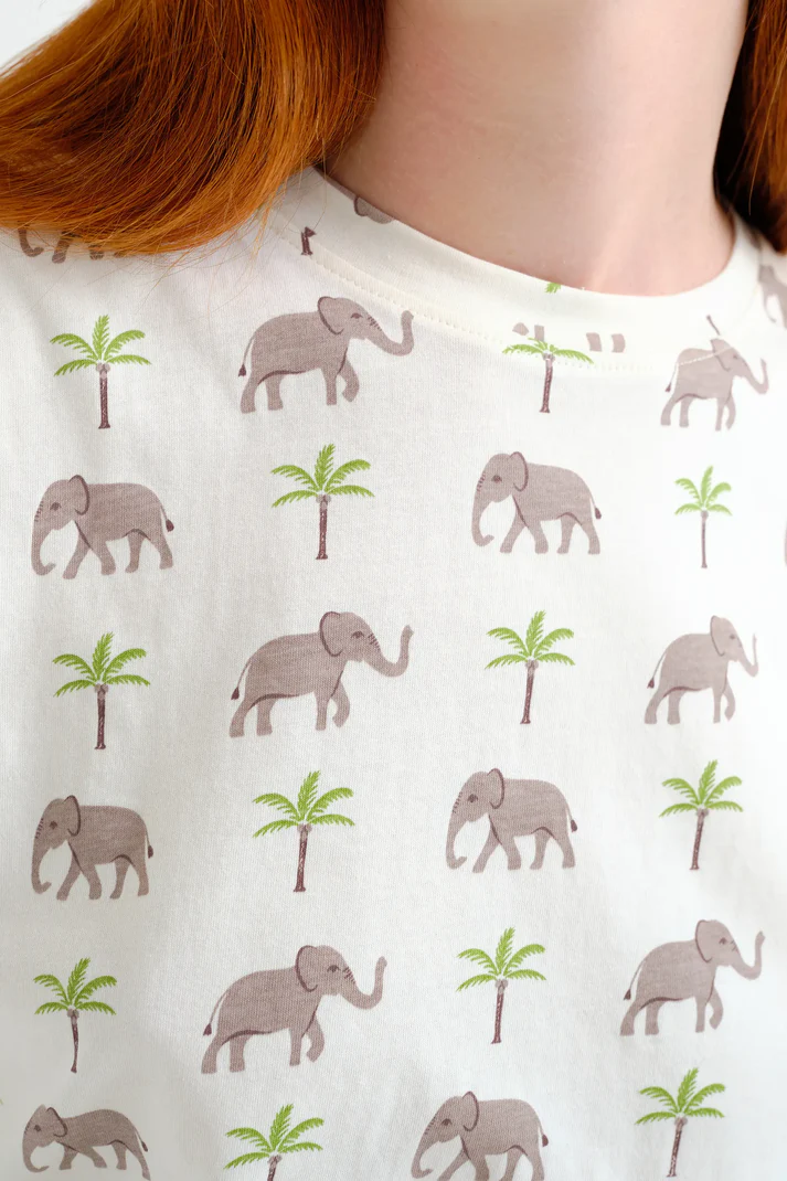Camiseta de tejido 100% algodón con estampado elefante. Cuello redondo y manga corta.