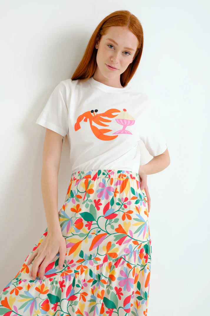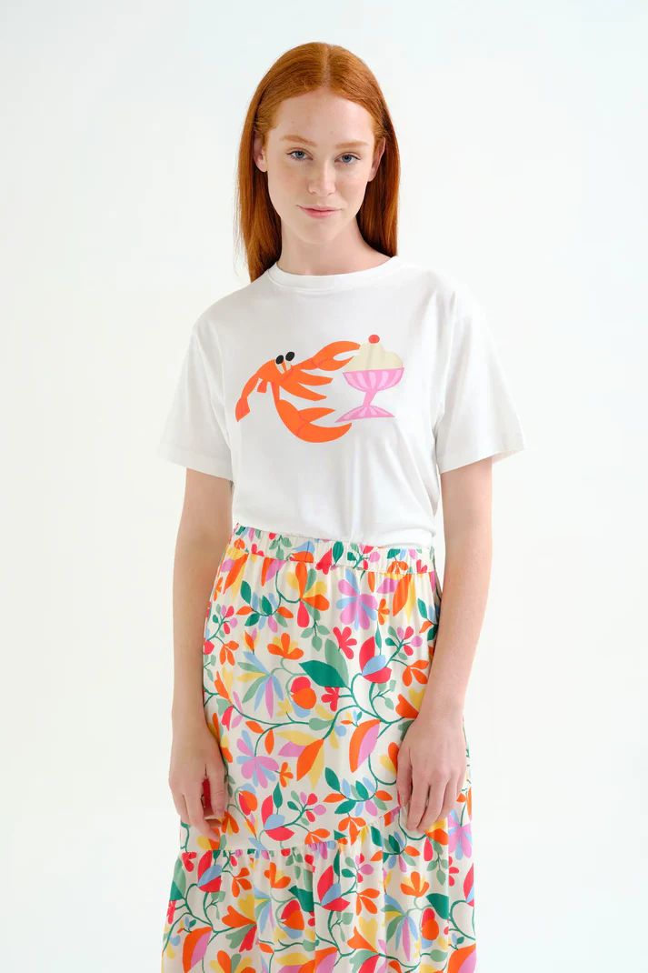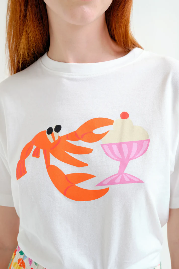 Camiseta de tejido 100% algodón con estampado langosta. Cuello redondo y manga corta.