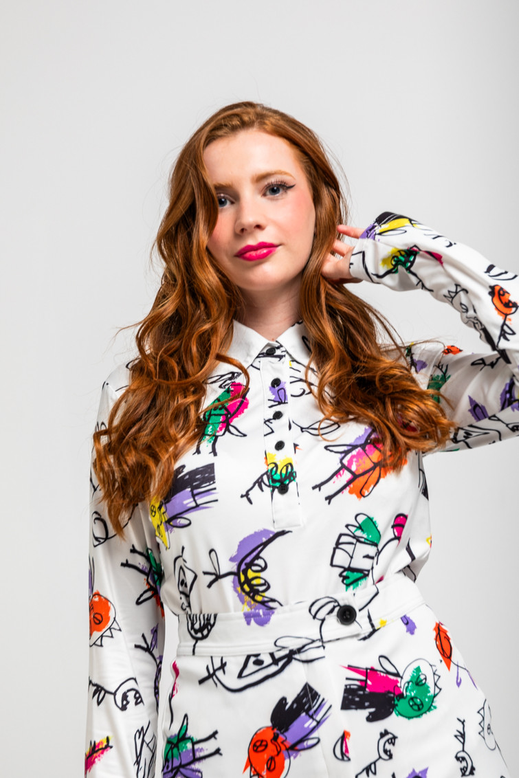 Imagine: es una colección benéfica que nace de la imaginación de los nenes de un centro de acogida en Granada, niños que a pesar de sus circunstancias crecen con su imaginación intacta. Parte de los beneficios de esta colección irán a parar a ayudar a dicho centro. – Camiseta Polo: Camiseta de estampado vectorial de tejido elástico de corte recto. Detalle de cuello solapa de cuello pronunciado y manga larga.