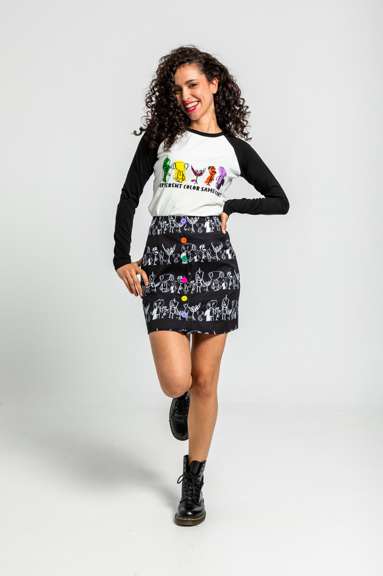 - Camiseta ranglan: Camiseta con ribete de canalé en el cuello y manga larga raglán en color de contraste y posicional de la colección delante.