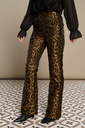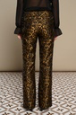 Pantalón de vestir recto y de tiro alto con detalle de pinzas delanteras cerradas y cierre de botón y cremallera. Estampado animal print satinado. Mezcla de algodón.