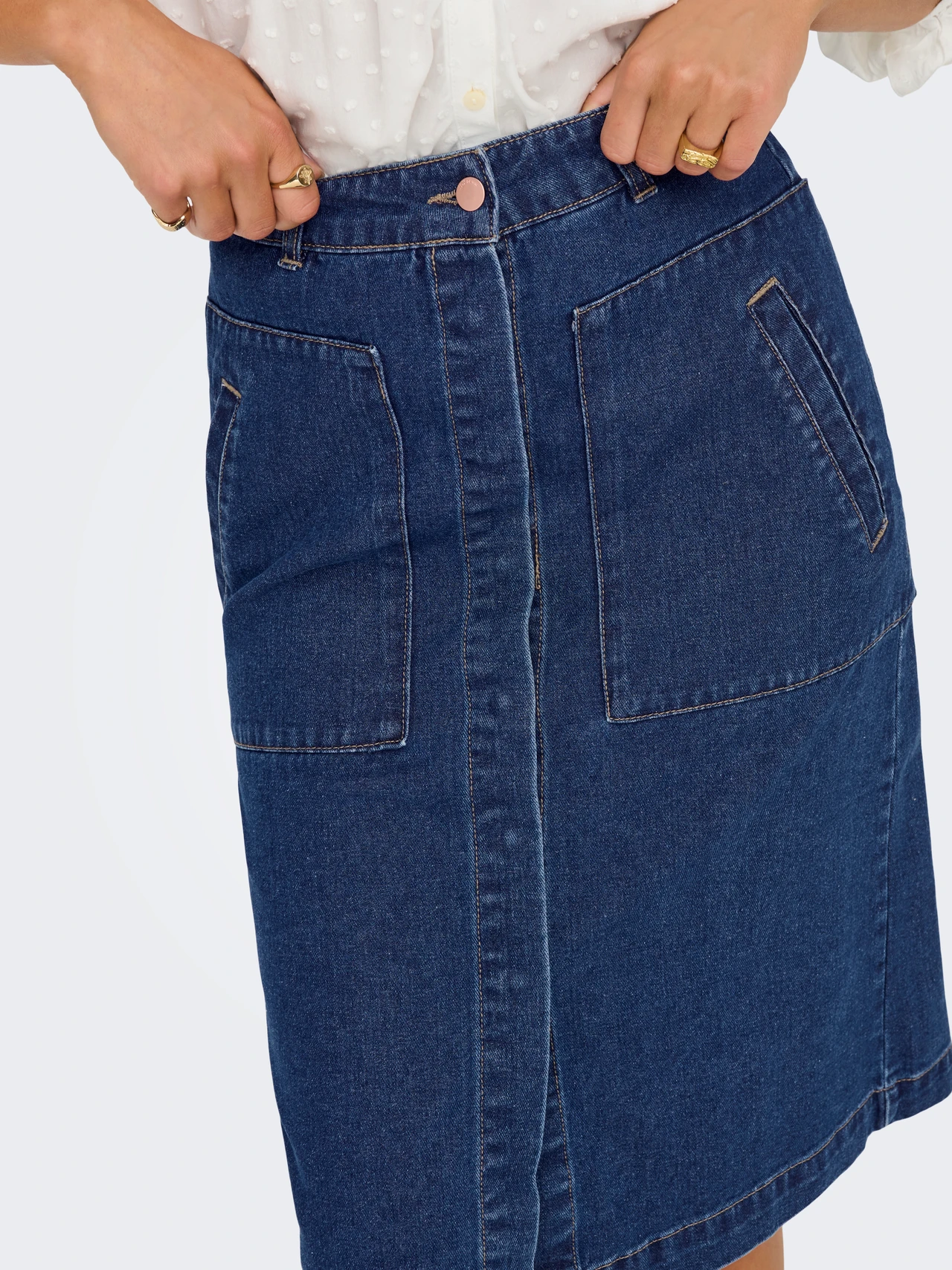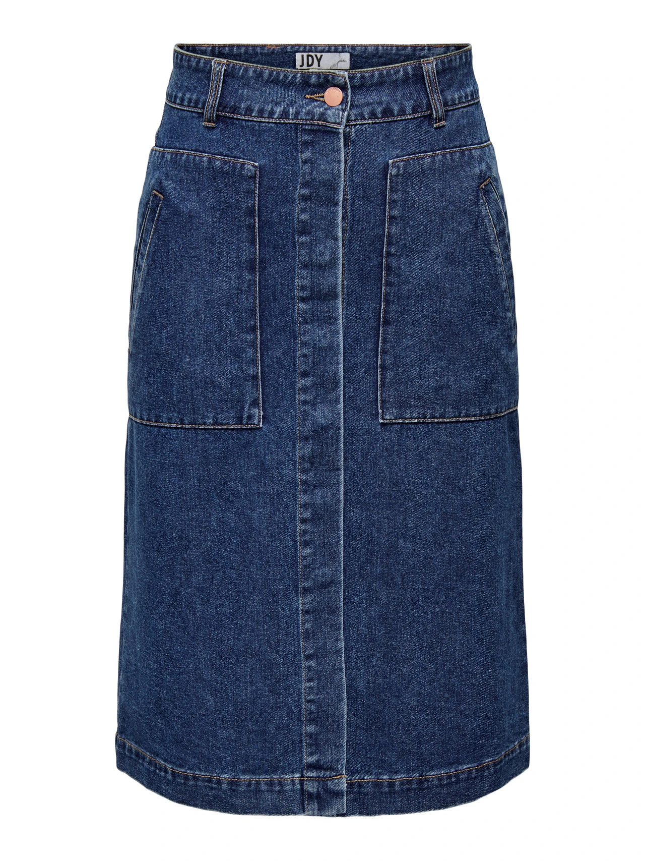 Luce impecable en la escuela, el trabajo o en cualquier actividad del día a día con modelos de moda fáciles de combinar con tus prendas favoritas. El algodón se elabora con fibras naturales, por lo que es un tejido suave y transpirable. JDY es una marca de moda internacional de diseño integral que ofrece productos accesibles y en tendencia a los amantes de la moda. - Artículo : Falda vaquera - Cierre : Cierre de botones - Bolsillos : Bolsillos delanteros - Largo/talla : Largo - Detalles : Trabillas