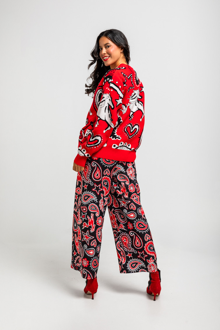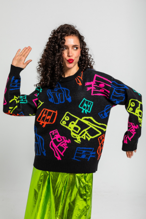 Suéter Oversize: Suéter de punto con ilustración all over tejido. Corte oversize y cuello redondo.