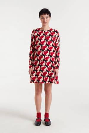 Vestido corto con tejido punto jacquard estampado Super Mini Dots. Cuello mock y manga larga.