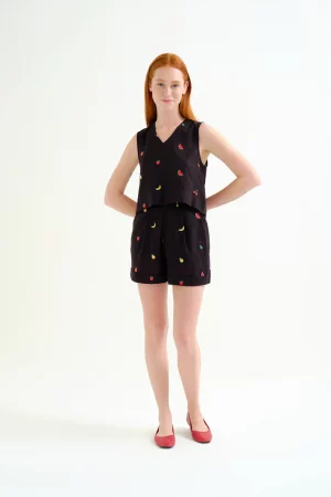 Top en punto fino de rayas blancas y negras con palmera – La Faraona