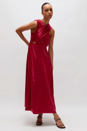 Vestido drapeado laterales rojo de estampado Bowie – We can be Heroes