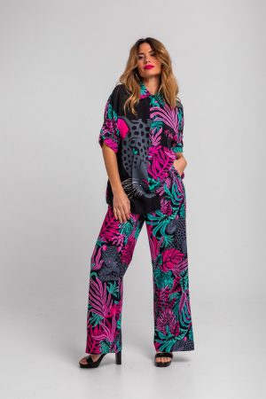 Camisa safari de hojas y panteras – Nocturna